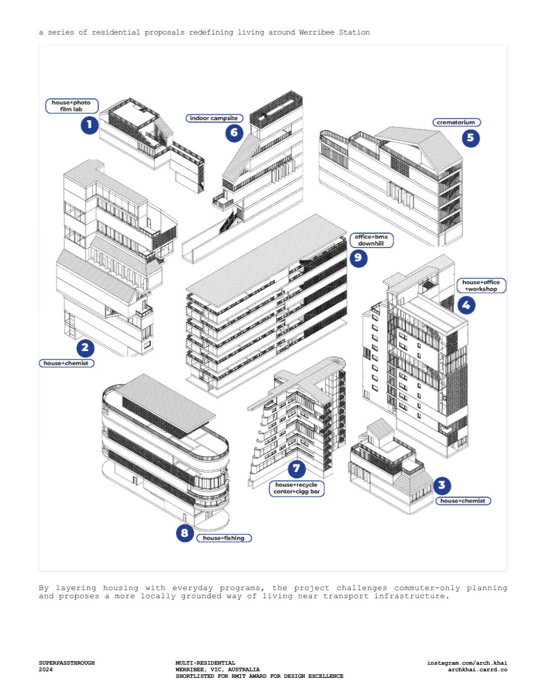 | Superpassthrough | Residential | Werribee, VIC | 2024 | Shortlisted for 2024 RMIT Award for Urban Design Excellence |