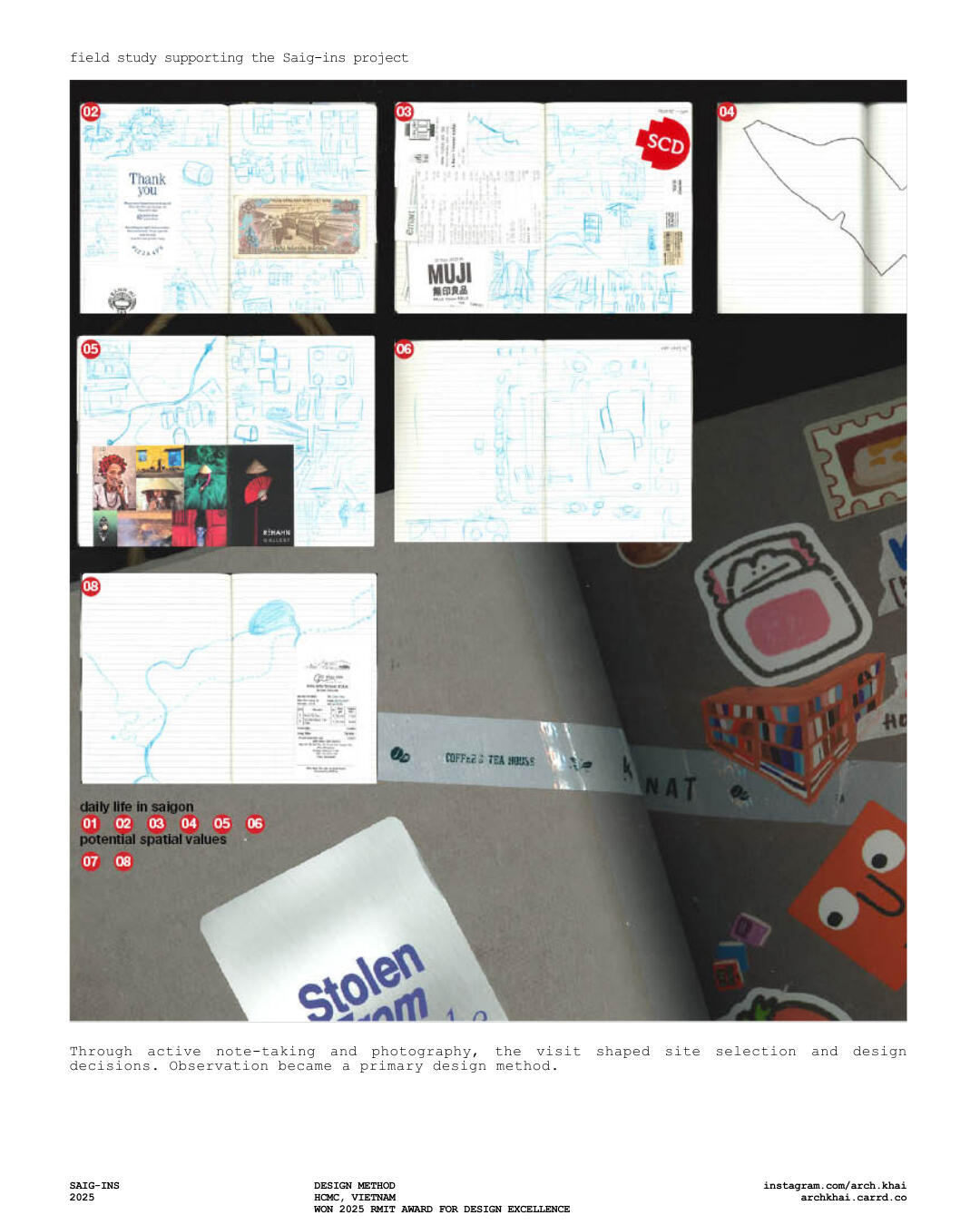 | Saig-Ins | Urban | HCMC, Vietnam | 2025 | 2025 RMIT Award for Urban Design Excellence |
